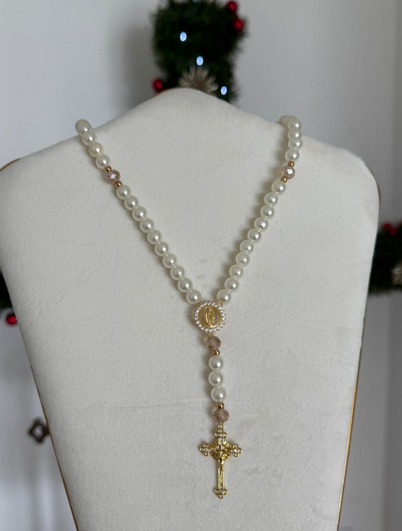 Apportez élégance et sérénité à vos prières avec ce chapelet aux perles blanc nacré délicatement sublimées par des touches champagne, évoquant la pureté et la lumière divine. Chaque perle est choisie pour accompagner vos moments de méditation avec grâce et harmonie.
