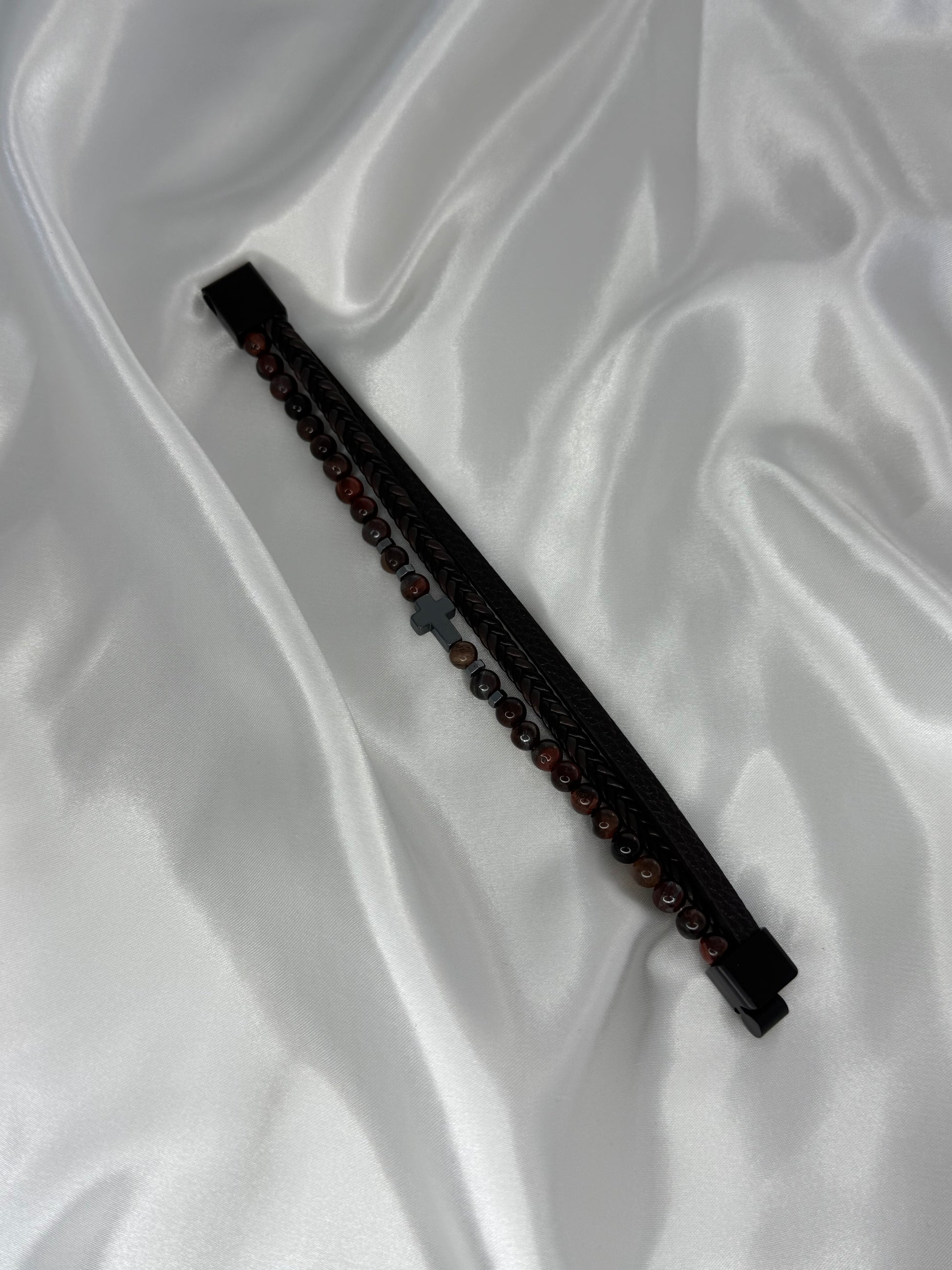 Orné de perles en pierres naturelles et d’une croix centrale, il devient plus qu’un accessoire — un symbole de force intérieure et de foi.