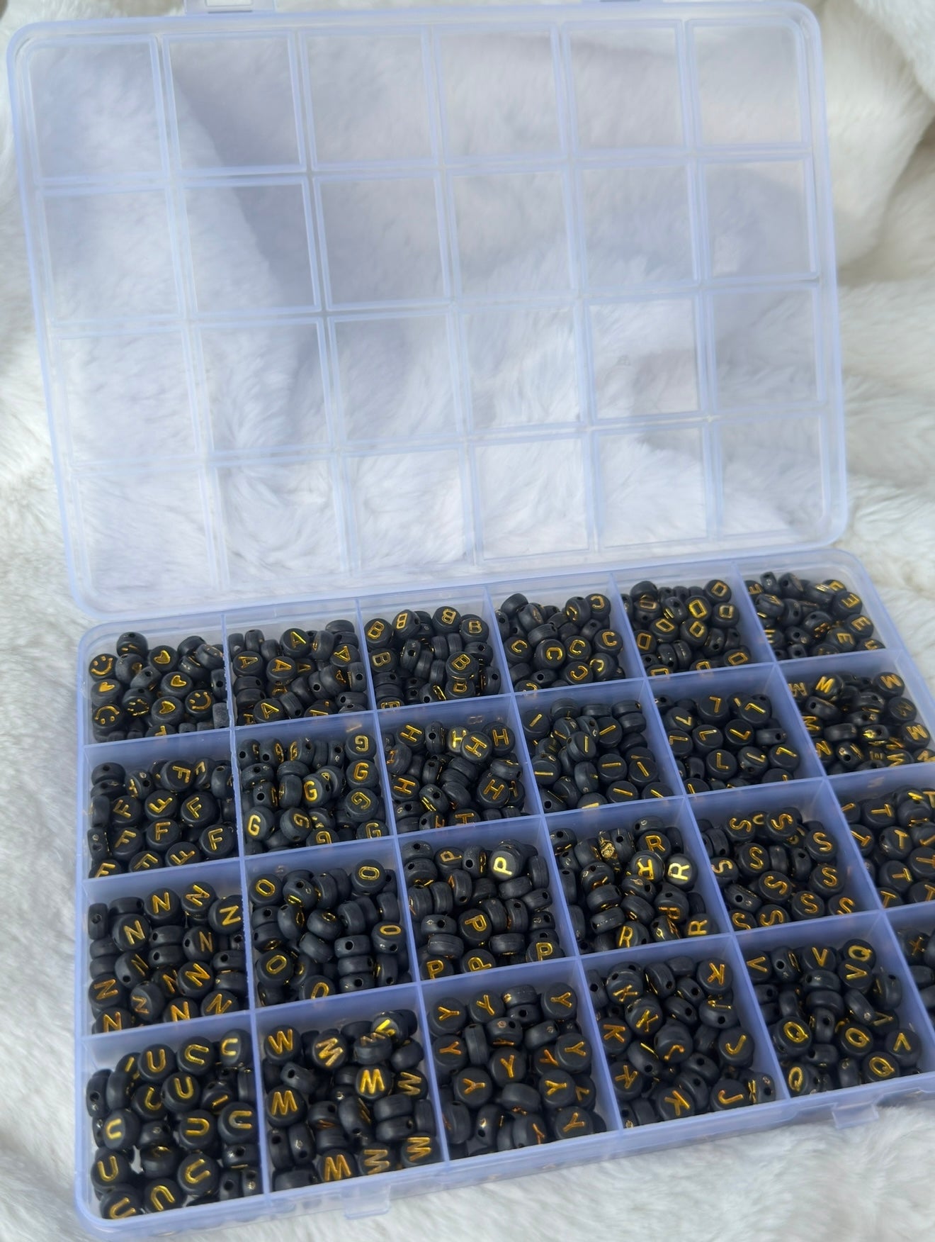 Boîte de 1200 Perles Lettres Noir & Doré
